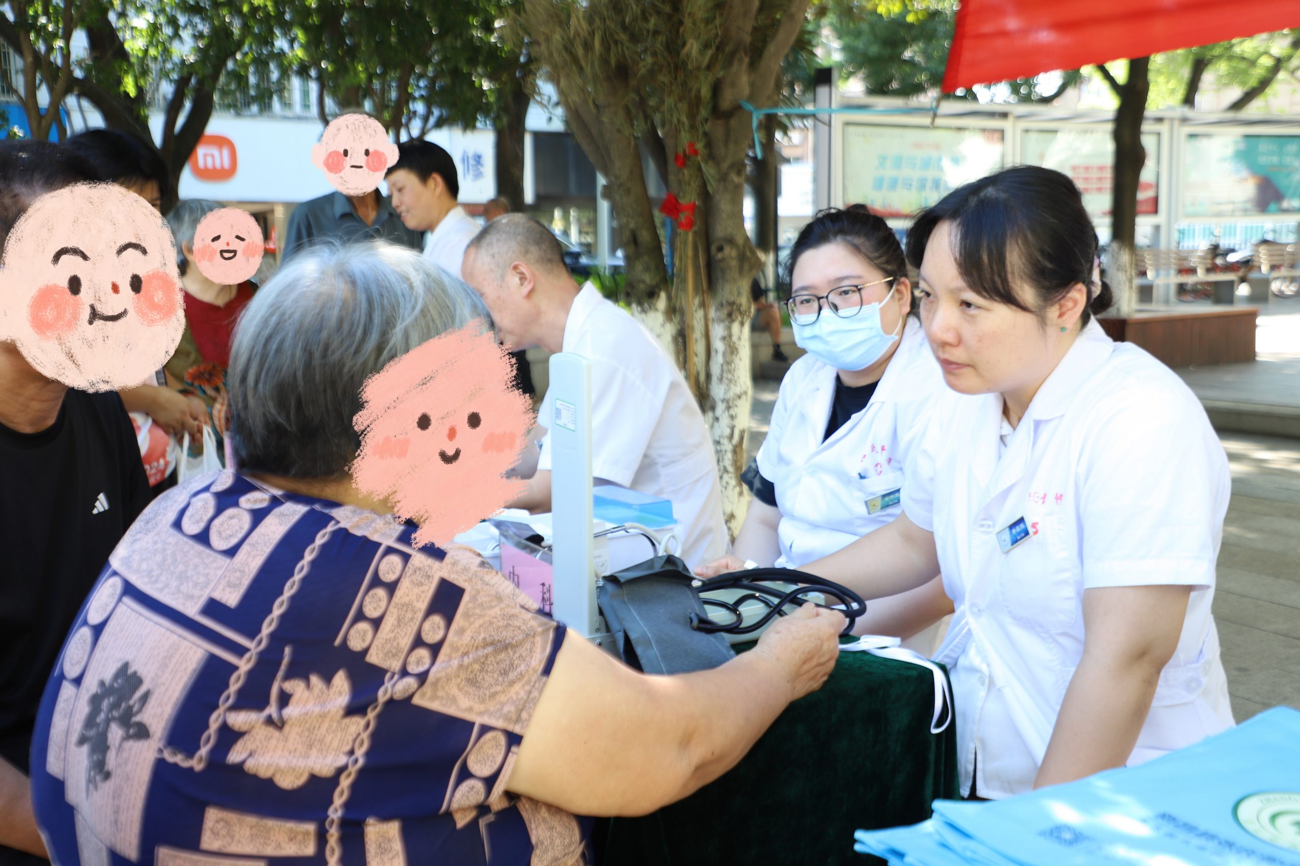 “阿姨,您的血压有点偏高,平时要注意低盐饮食,降压药得按时吃,可不能随便停。” 内科医生一边为市民测量血压,一边仔细叮嘱用药细节。一旁的血糖检测区医护人员动作娴熟地为群众采血、读数,及时告知检测结果,并结合数值给出饮食、运动方面的建议。
